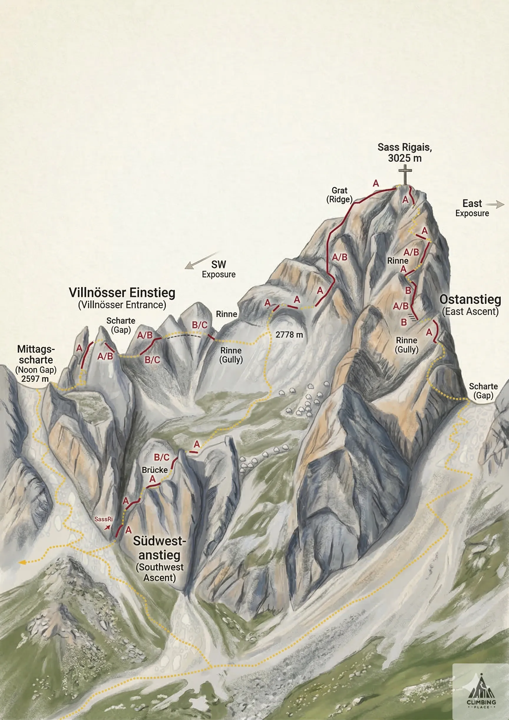 Full details of Sass Rigais crossing